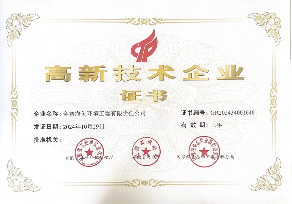 金寨海創成功取得“高新技術企業”認定