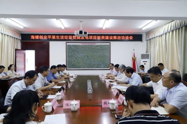 2020年7月8日,平果生活垃圾焚燒發電項目投資建設推進洽談會順利舉行。百色市人大常委會副主任、平果市委書記黃志愿主持洽談會,市政協主席翟冰、市人民政府副市長藍云峰;海螺創業總經理紀勤應及相關部門負責人出席洽談會。