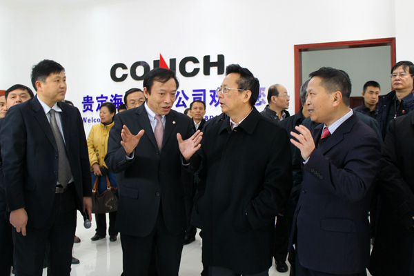 ? ? 海螺創(chuàng)業(yè)總經(jīng)理紀(jì)勤應(yīng)、副總經(jīng)理李大明、公司秘書疏茂及業(yè)主單位海螺水泥貴州區(qū)域有關(guān)負(fù)責(zé)人熱情接待了陳昌智副委員長一行。