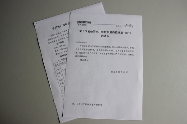 下發(fā)《出廠板材質(zhì)量內(nèi)控標準》