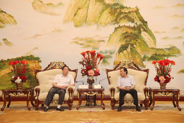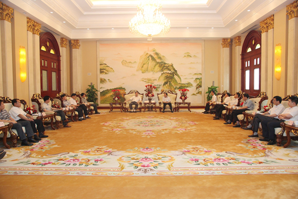 ? ? 簽字儀式前,紀勤應總經理在海螺國際會議中心海螺廳會見楊維縣長一行。